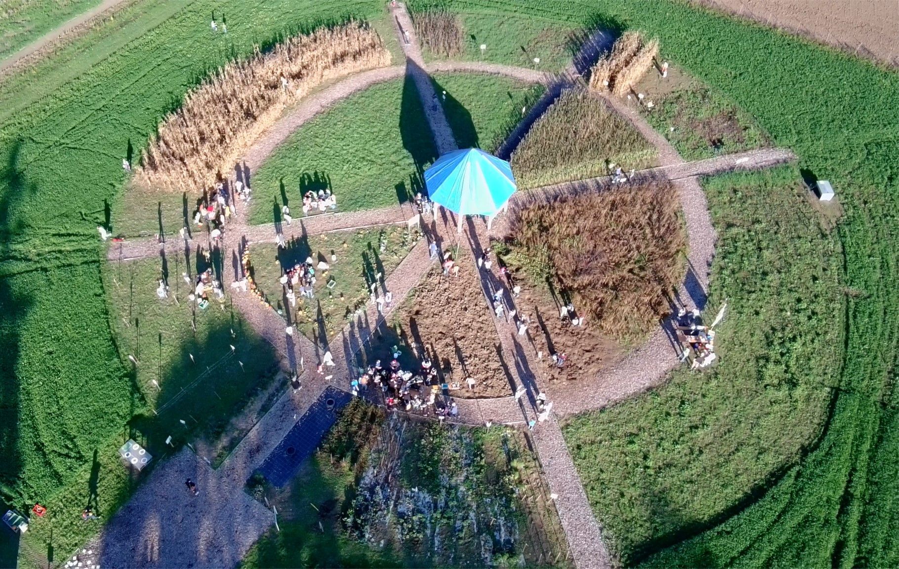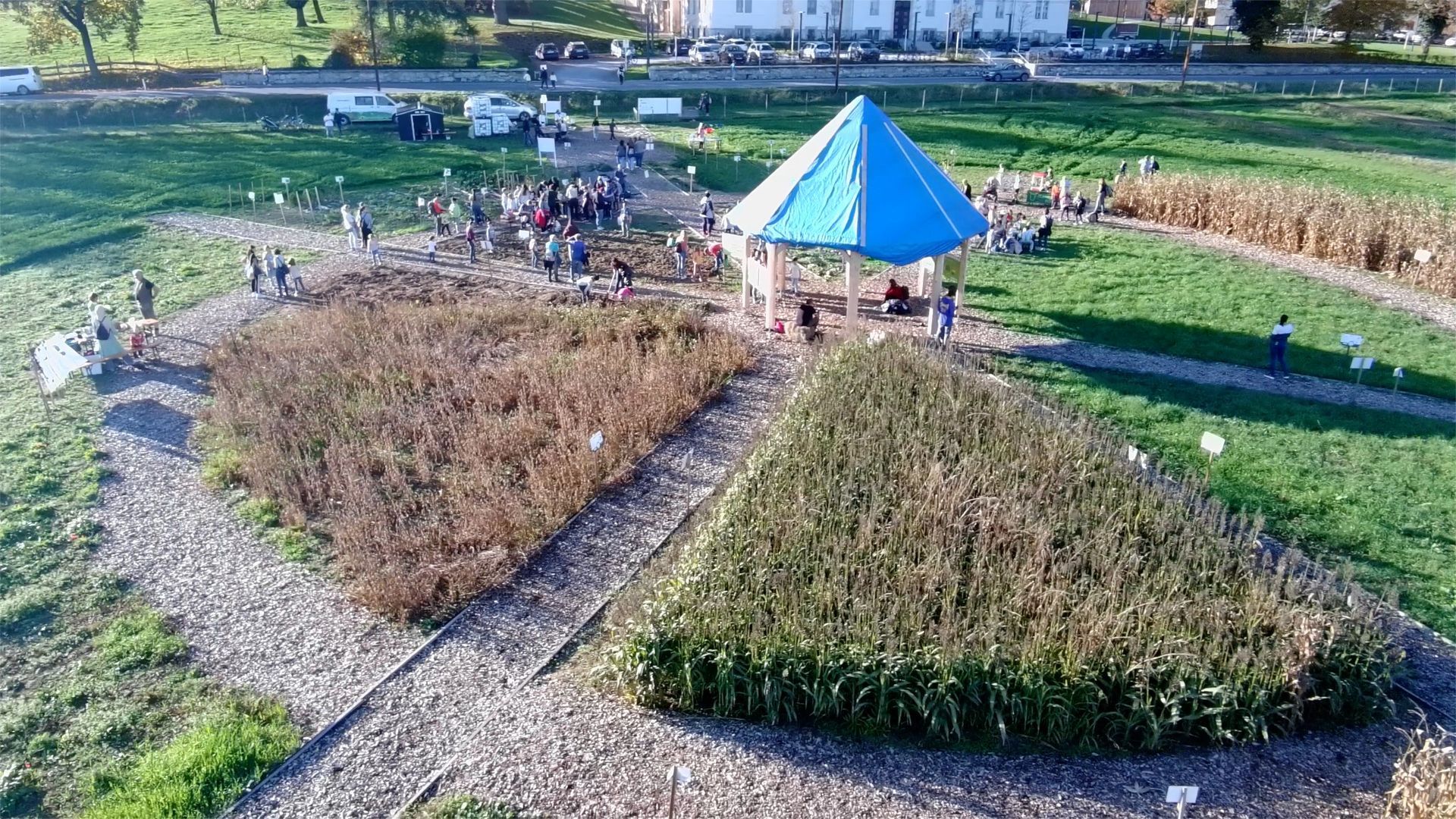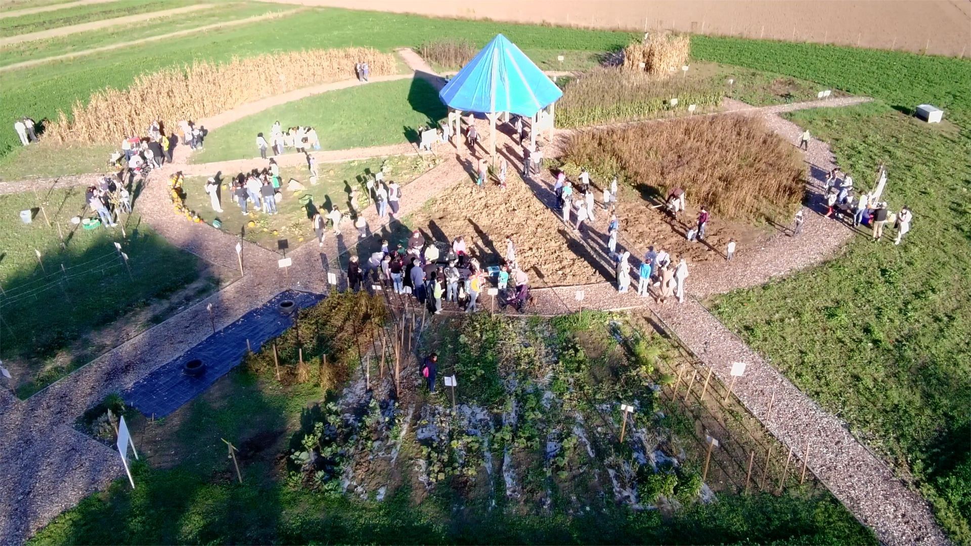Auf 2.000 m2 Ackerfläche wächst hier alles, was ein Mensch für ein Jahr zum Leben braucht. Obst und Gemüse, aber auch Getreide für Brot oder Futtermittel